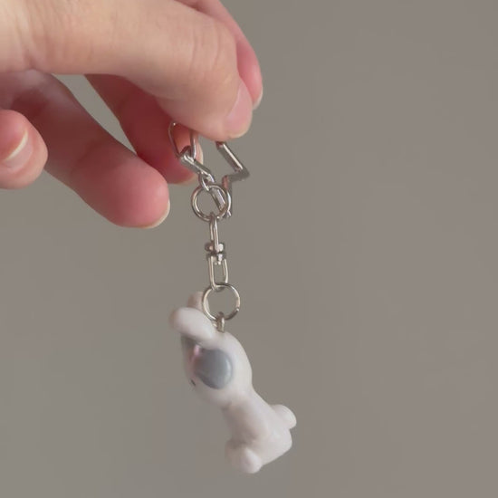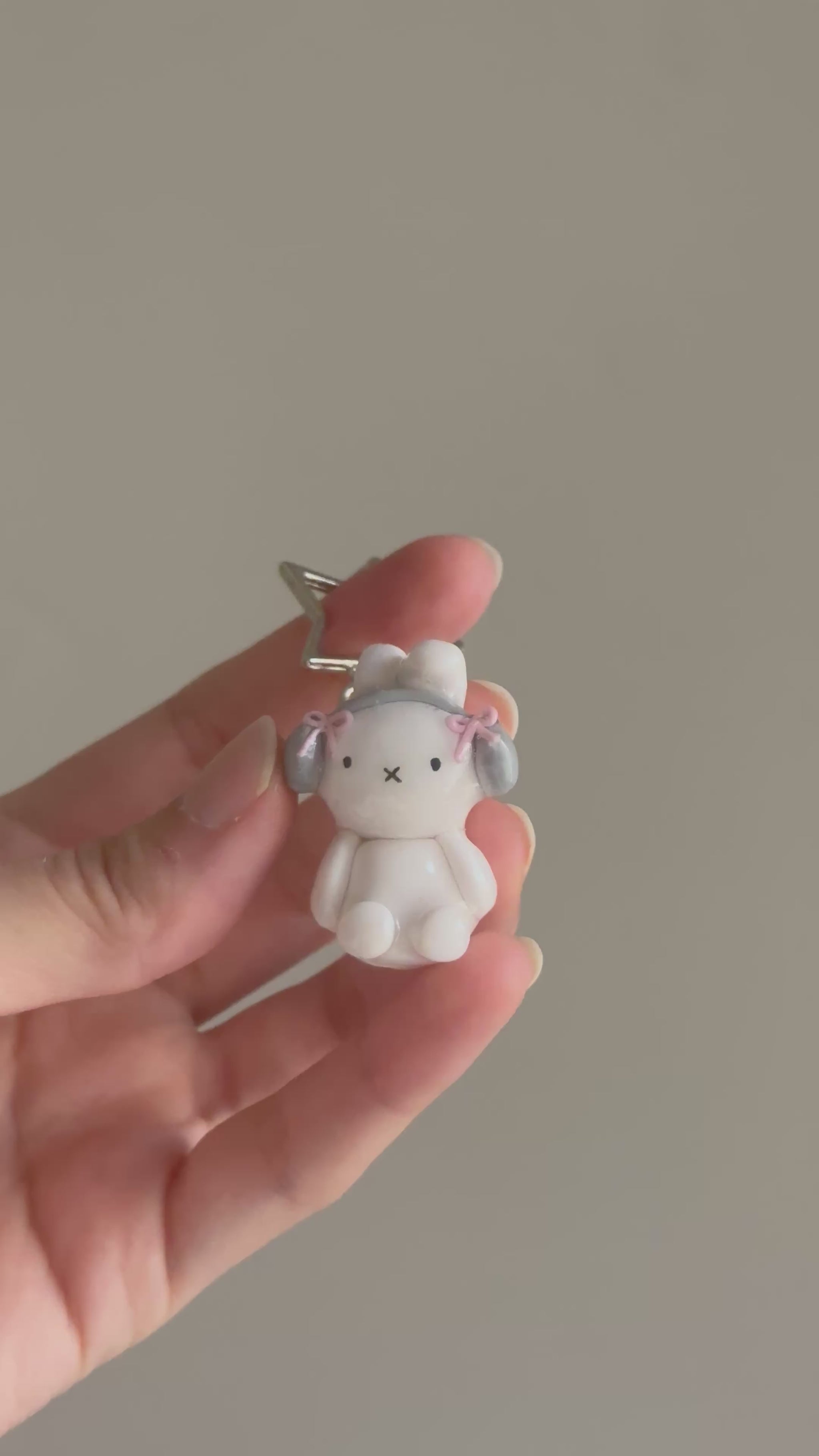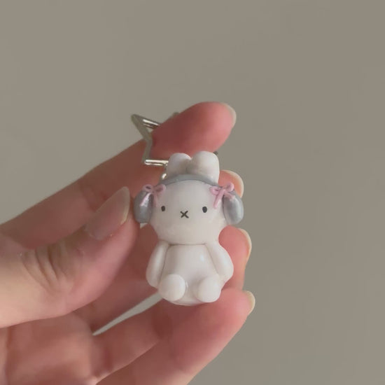 Cute clay figurine of Miffy, hand sculpted using polymer clay. Comes with a metal clasp to be used as bag charm or keychain!